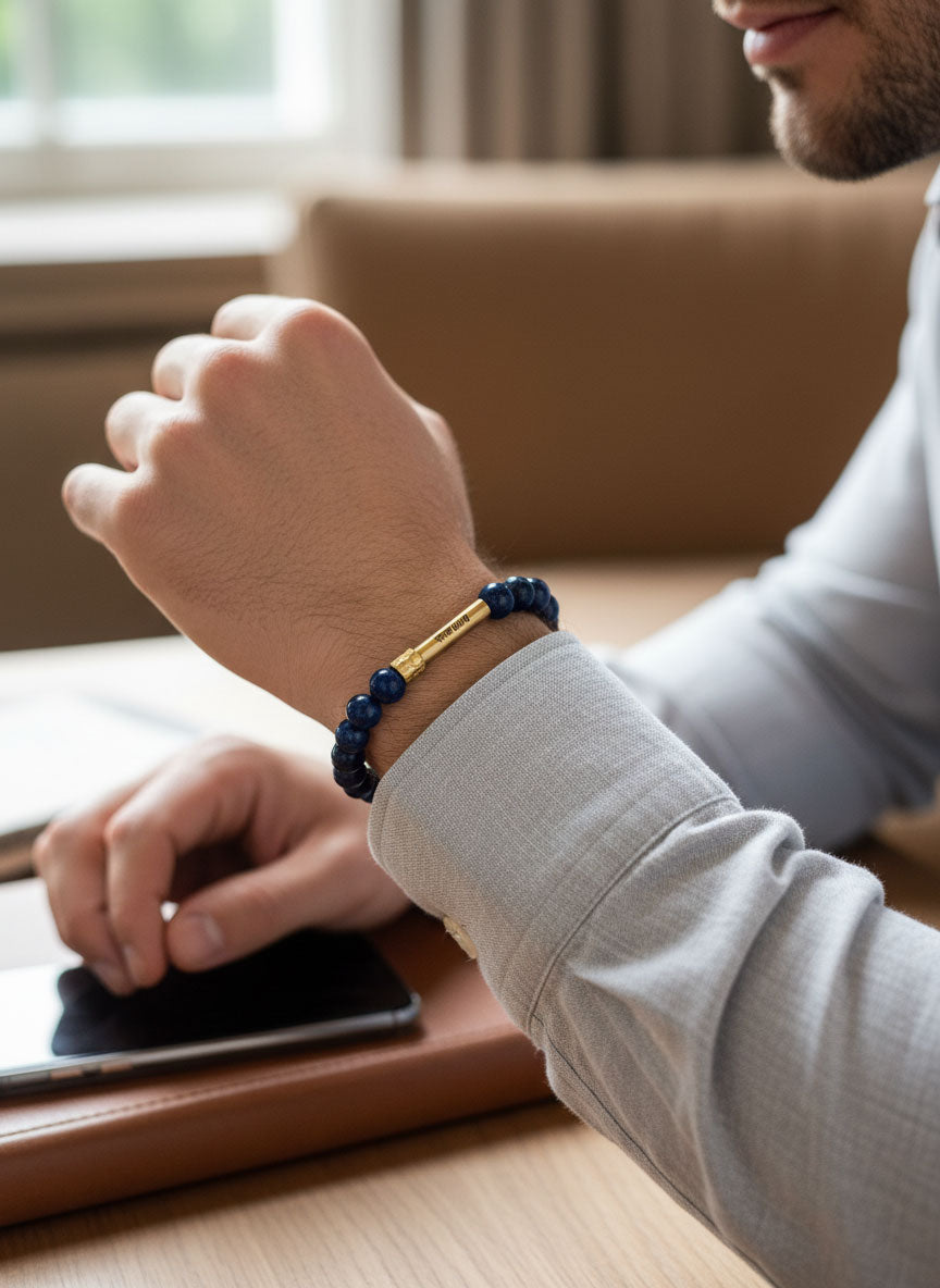 Lapis lazuli bracelet looks royal and gives me confidence in meetings.