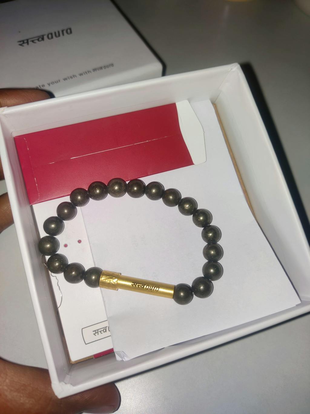 Packaging is amazing, loved the thoughtful insights on how manifestation needs to be written on the wish paper. That brass lock looks good, it's worth the purchase I must say as I tried another one earlier but this gives a premium look and it just feels good to wear it. Much appreciated
