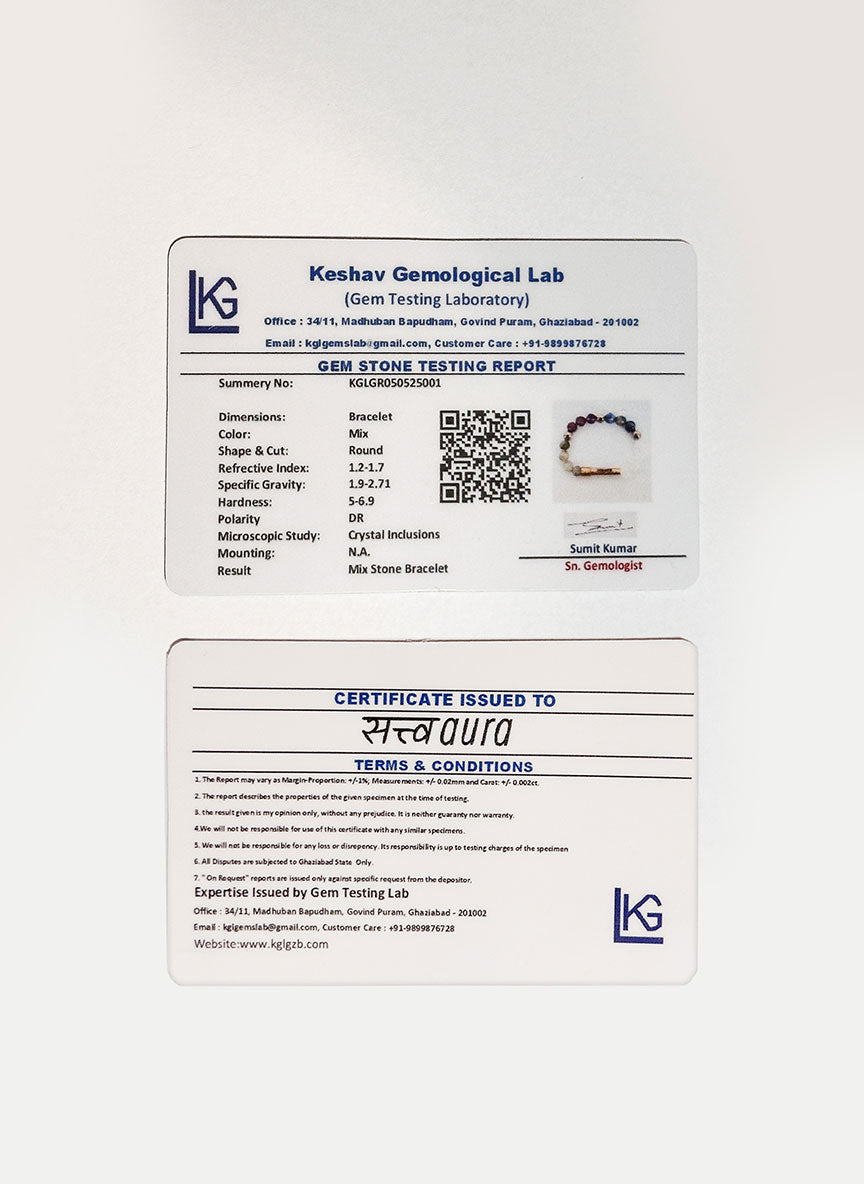 Each bracelet is authenticated and certified for your peace of mind. Genuine stones, verified quality, lasting trust. A digital certificate of authenticity is included with every bracelet