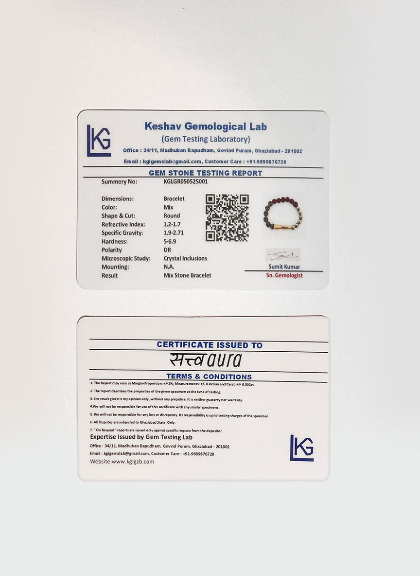 Each bracelet is authenticated and certified for your peace of mind. Genuine stones, verified quality, lasting trust. A digital certificate of authenticity is included with every bracelet